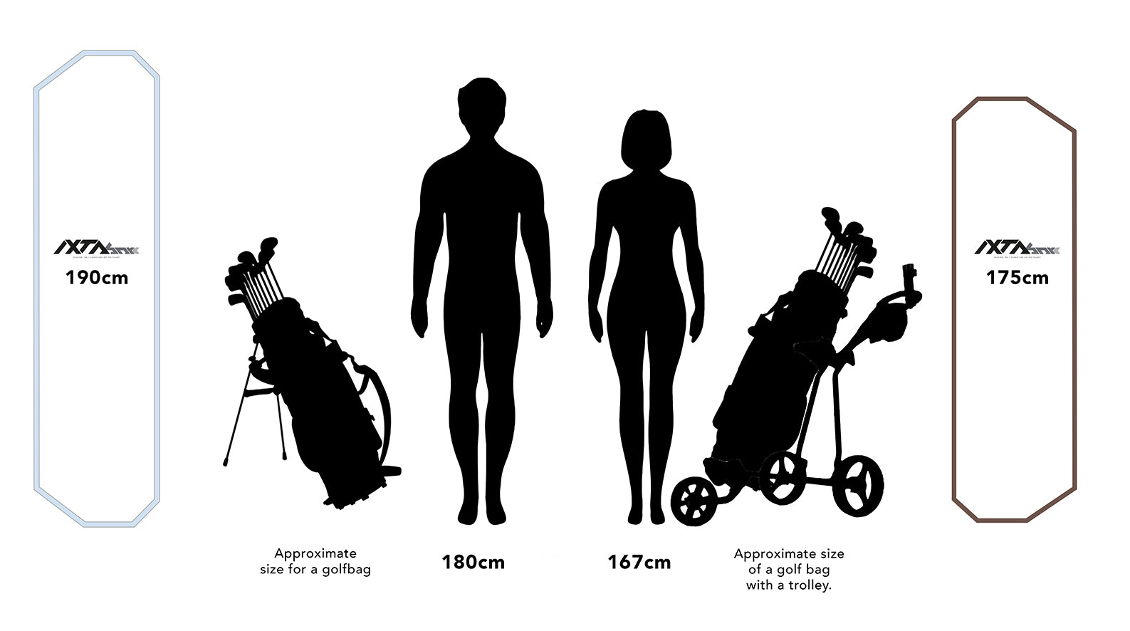 We generally recommend the 190cm model, which fits most families and vehicles and can accommodate at least two golf bags and a trolley. The 175cm model works well for smaller cars needing extra space for gear, fitting most cars and typically holding two golf bags.
