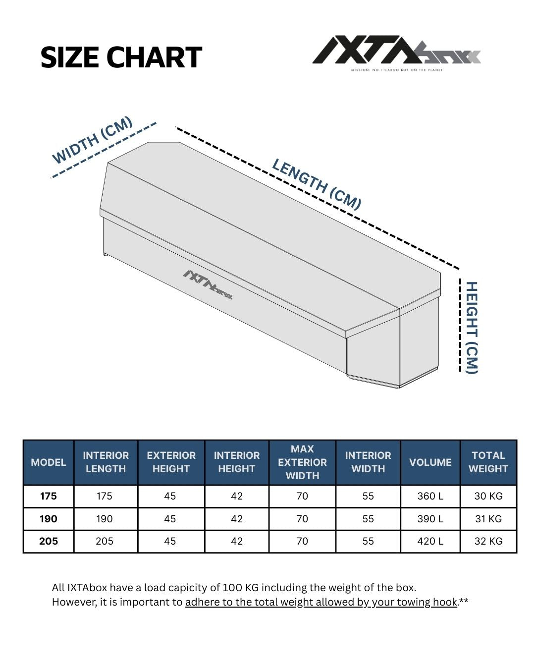- Smart pin to lock your IXTAbox to the towbar from inside the box