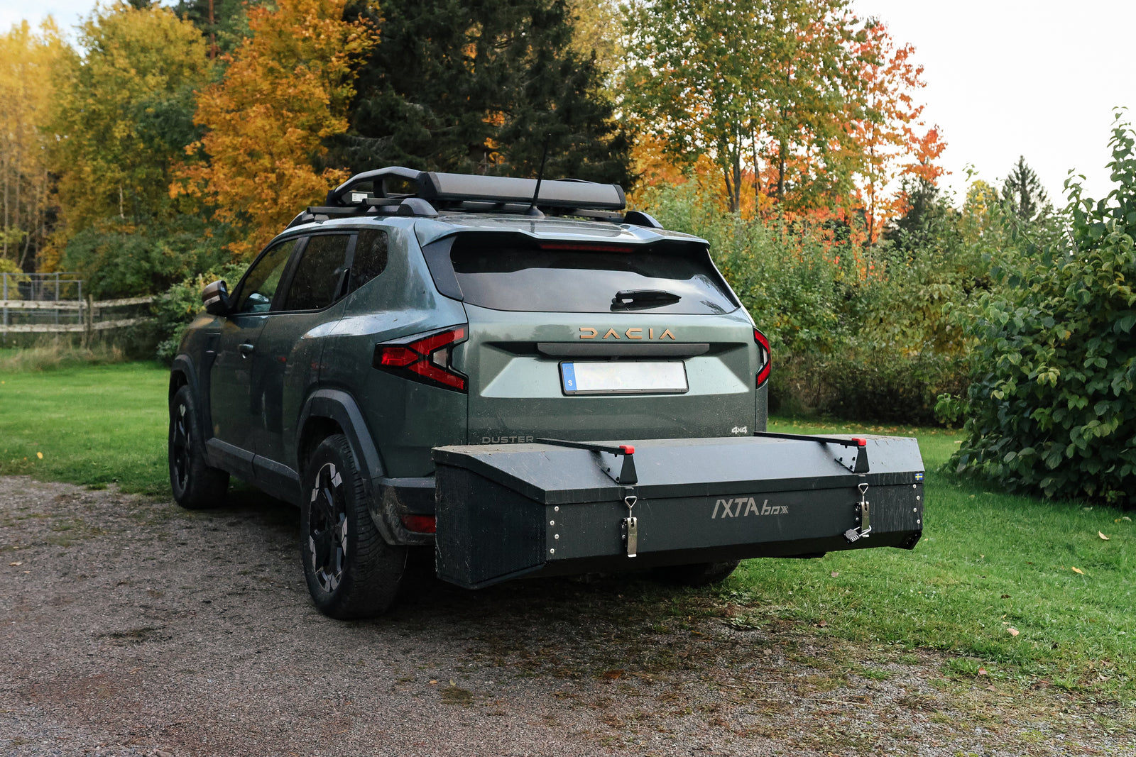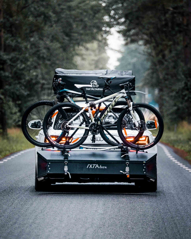 Because it sits behind the car instead of on the roof, IXTAbox Pro creates less aerodynamic drag than a traditional roof box. This can help reduce fuel consumption and preserve electric range compared to roof-mounted cargo solutions.